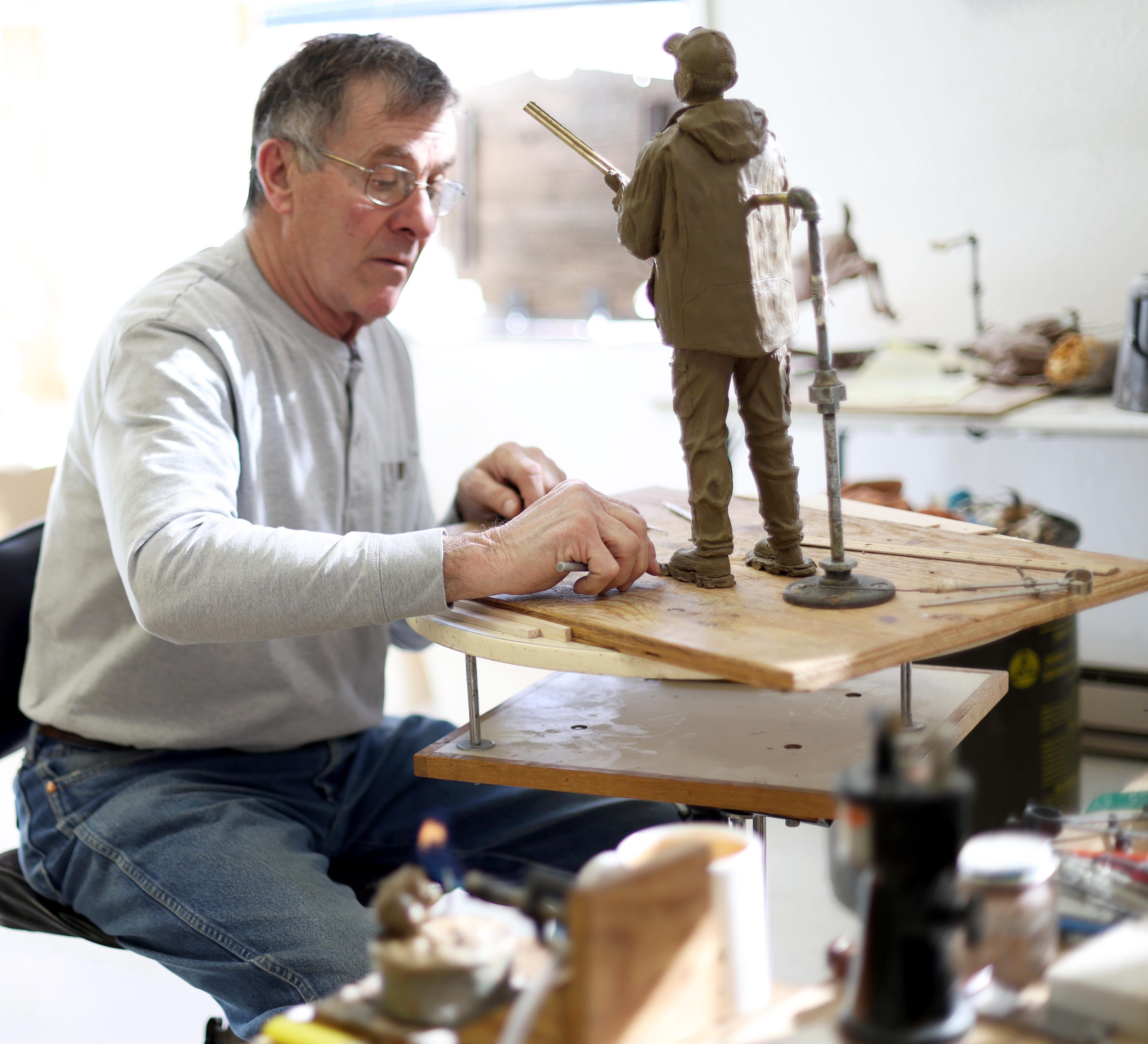 This underlying clay remains very pliable so Fred can continue to make adjustments to the model’s position and even lop off a limb should something be dissatisfactory in the process! To translate his measurements onto the piece, Fred employs an architect’s rule, which allows him to scale the work.